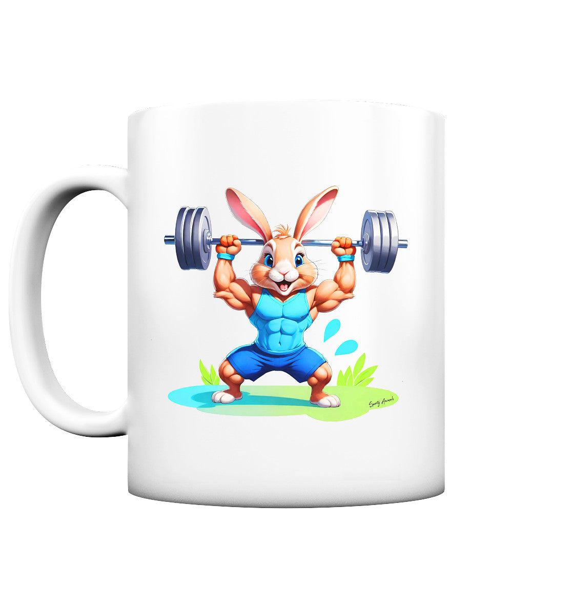 Bereit für einen energiegeladenen Start in den Tag? Unser Kaffeebecher mit einem fitnessbegeisterten Hasen im Comic-Stil ist das perfekte Workout für Ihre Stimmung! Dieser humorvolle Becher macht nicht nur Ihren Kaffee, sondern auch Ihr Lächeln stärker. Jetzt bestellen und Ihren Morgen aufpeppen!