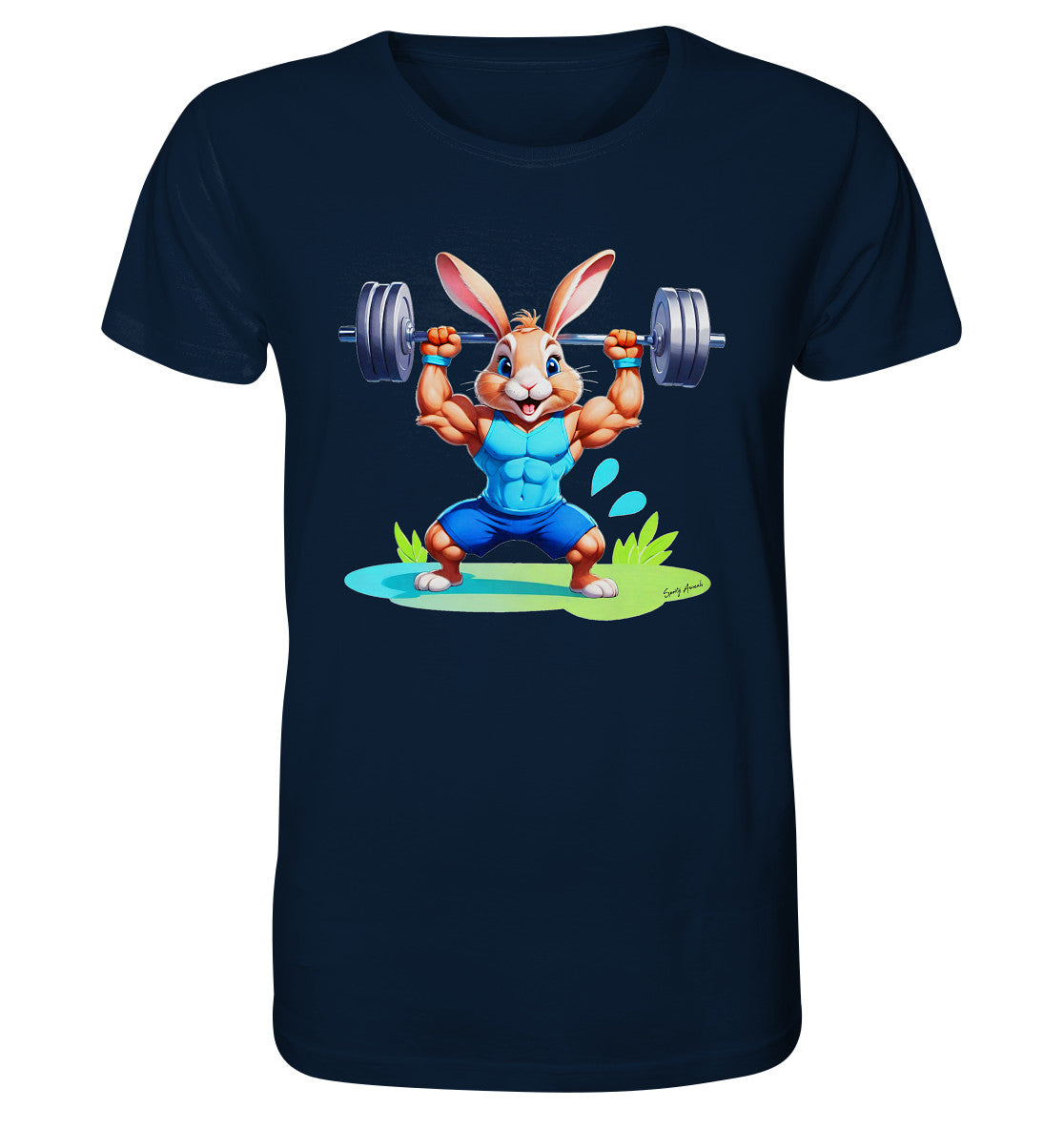 "Hoppla, da kommt der Fitness-Hase: Bio-Baumwoll-T-Shirt mit einzigartigem Comic-Design" - Unser superweiches Bio-Baumwoll-T-Shirt bringt frischen Wind in deine Sportgarderobe! Der coole Comic-Hase, bekannt für seine Schnelligkeit und Ausdauer, zeigt, dass auch unsere kleinen Freunde auf Fitness stehen. Mit seinem motivierenden Lächeln und den aufgepumpten Muskelarmen ist er der perfekte Begleiter für dein nächstes Workout. Nachhaltig produziert und super bequem – dieses Shirt ist ein Muss für alle Fitness-Enthusiasten und Tierliebhaber. #Bio-Baumwoll-T-Shirt #Fitness-Hase #Comic-Design #nachhaltig #Workout-Mode #Tiermotive #Hase #Sportbekleidung #Unisex