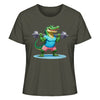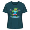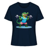 "Krokodil-Power für starke Frauen: Bio-Baumwoll-T-Shirt mit witzigem Krokodil-Workout" – Unser einzigartiges Damen-T-Shirt aus 100% zertifizierter Bio-Baumwolle ist ein echter Hingucker! Das coole Design zeigt ein lachendes Krokodil, das gerade eine Hantel stemmt. Die lockere Passform und das weiche Material sorgen für höchsten Tragekomfort, während der auffällige Print alle Blicke auf sich zieht. Perfekt für alle sportlichen Frauen, die Wert auf Nachhaltigkeit und einen einzigartigen Style legen. Das T-Shirt ist in verschiedenen Farben erhältlich und eignet sich sowohl für das Training als auch für die Freizeit. #BioBaumwolle #DamenTshirt #Krokodil #Workout #Humor #Nachhaltig #FairFashion #UniqueStyle