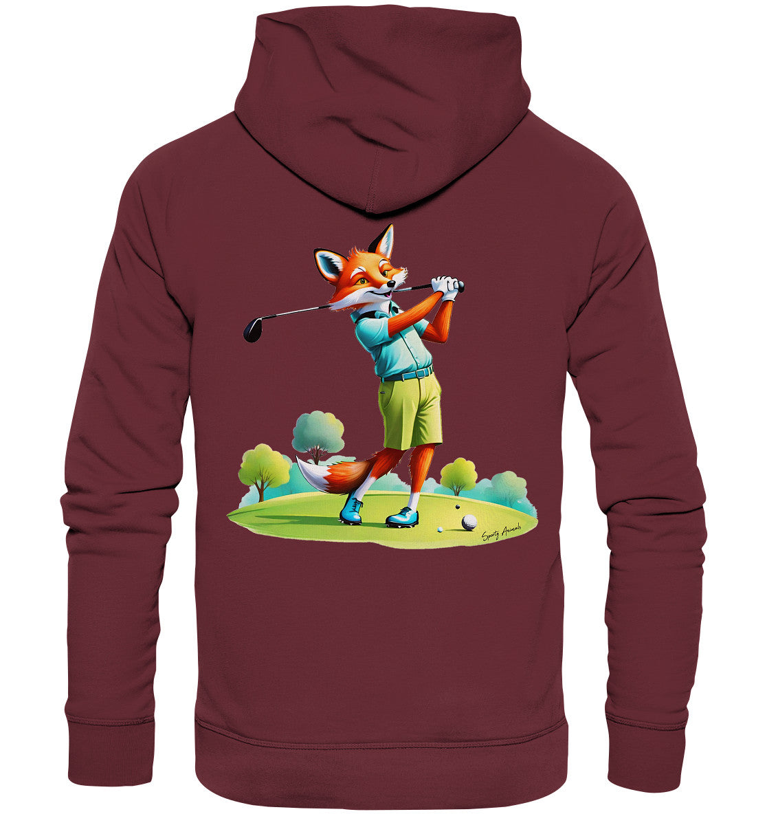 "Schlau wie ein Fuchs: Bio-Hoodie mit golfendem Comic-Fuchs" – Unser gemütlicher Hoodie aus 100% zertifizierter Bio-Baumwolle aus kontrolliert biologischem Anbau zeigt einen schlauen Fuchs, beim Golfspiel. Der Fuchs, bekannt für seine List und Klugheit, bringt eine frische Brise auf den Golfplatz. Ein perfektes Geschenk für alle Golfliebhaber und Naturfreunde! Der Hoodie ist in einer entspannten Regular Fit geschnitten und bietet höchsten Tragekomfort. #BioHoodie #GolfHoodie #FuchsMotiv #NachhaltigeMode #UnisexHoodie #GolfGeschenk #Tierliebe