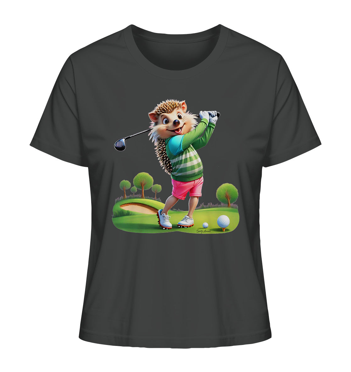 „Bringen Sie ein bisschen Spaß und Stil auf den Golfplatz mit unserem Damen T-Shirt im Comic-Style! Unser niedlicher Igel zeigt sein Talent fürs Golfen und sorgt garantiert für einige Lacher. Aus weicher Baumwolle gefertigt, ist dieses Shirt nicht nur bequem, sondern auch ein echter Blickfang. Holen Sie sich Ihren persönlichen Golfer-Igel und verbreiten Sie gute Laune auf dem Grün!“