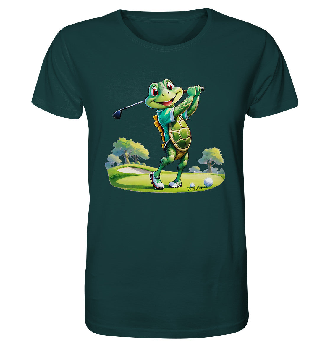 „Entdecke unser humorvolles T-Shirt für Damen und Herren mit einer lustigen Schildkröte beim Golfspiel! Mit einem lässigen Design und hochwertigem Material ist dieses Shirt nicht nur ein Blickfang, sondern auch bequem zu tragen. Hole dir jetzt deinen einzigartigen Style für jeden Anlass!“