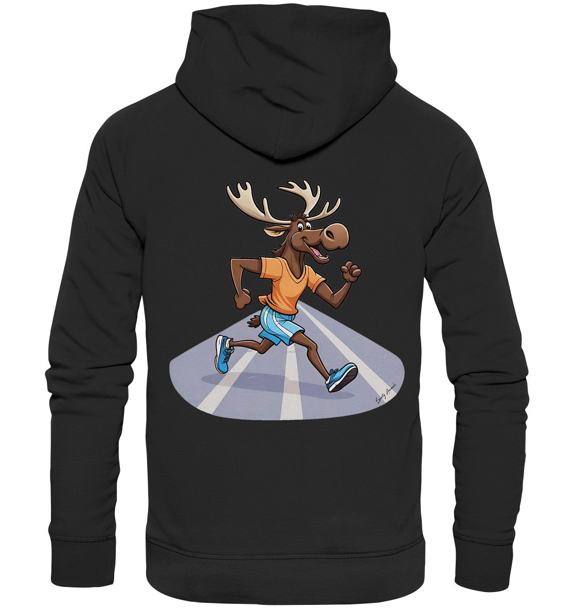 Unser Hoodie für Damen und Herren bringt Sie mit einem joggenden Elch garantiert zum Schmunzeln! Dieser lustige Elch, bekannt für seine gemütliche Art, hat sich entschlossen, sportlich zu werden und joggt jetzt mit voller Elan. Perfekt für kalte Tage, kuschelig weich und absolut humorvoll! Ein Muss für alle, die Spaß und Stil kombinieren möchten.