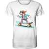 Dieses lustige Hunde-T-Shirt ist ein absoluter Hingucker! Der coole Skateboard-Hund wird garantiert alle Blicke auf sich ziehen. Perfekt als Geschenk für Hundeliebhaber und Skateboard-Fans. Erhältlich für Damen und Herren in vielen Größen.