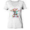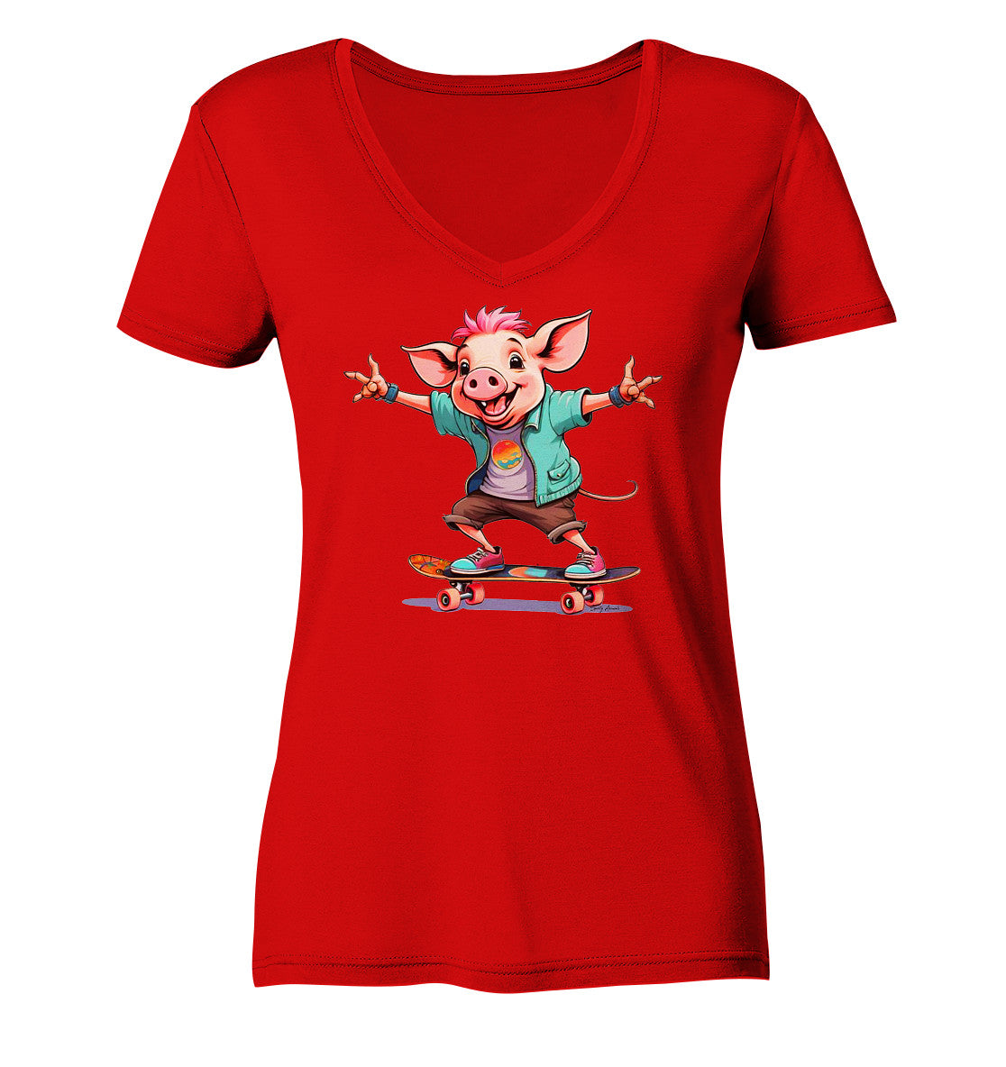 Unser Damen T-Shirt mit V-Ausschnitt zeigt ein cooles Schwein auf dem Skateboard. Das lustige Motiv verkörpert Spaß und Freude. Die hochwertige Baumwolle sorgt für Komfort beim Tragen. Ein Must-Have für alle Skateboard-Fans und Tierliebhaber!