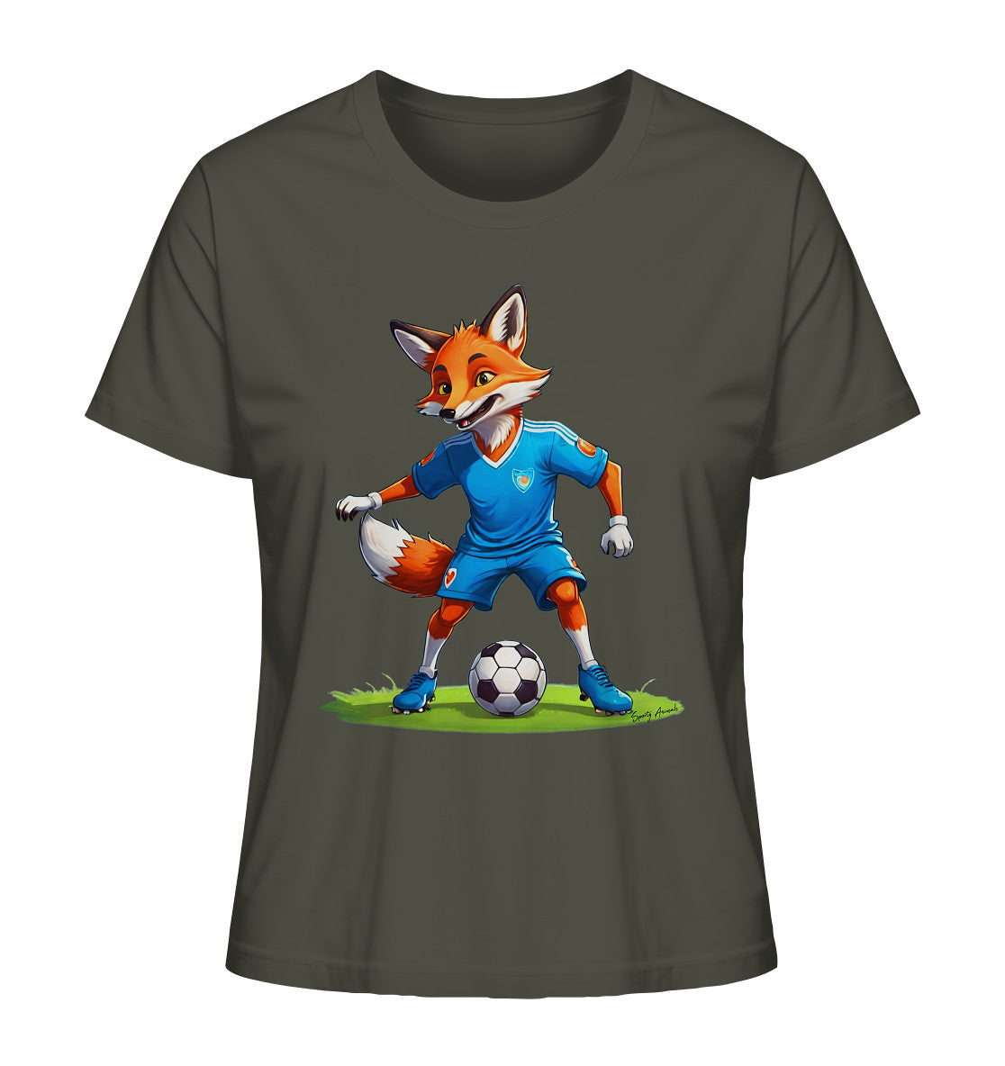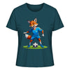 „Tauche ein in die Welt des Sports mit unserem Damen-T-Shirt im Comic-Style! Ein cleverer Fuchs dribbelt geschickt einen Fußball und bringt nicht nur dein Outfit, sondern auch deine Laune auf Höchstniveau! Mit diesem frechen Design wirst du zum Blickfang auf dem Spielfeld – und abseits davon. Hol dir jetzt dein neues Lieblings-Shirt und zeig allen, dass du mit Style und Witz punktest!“