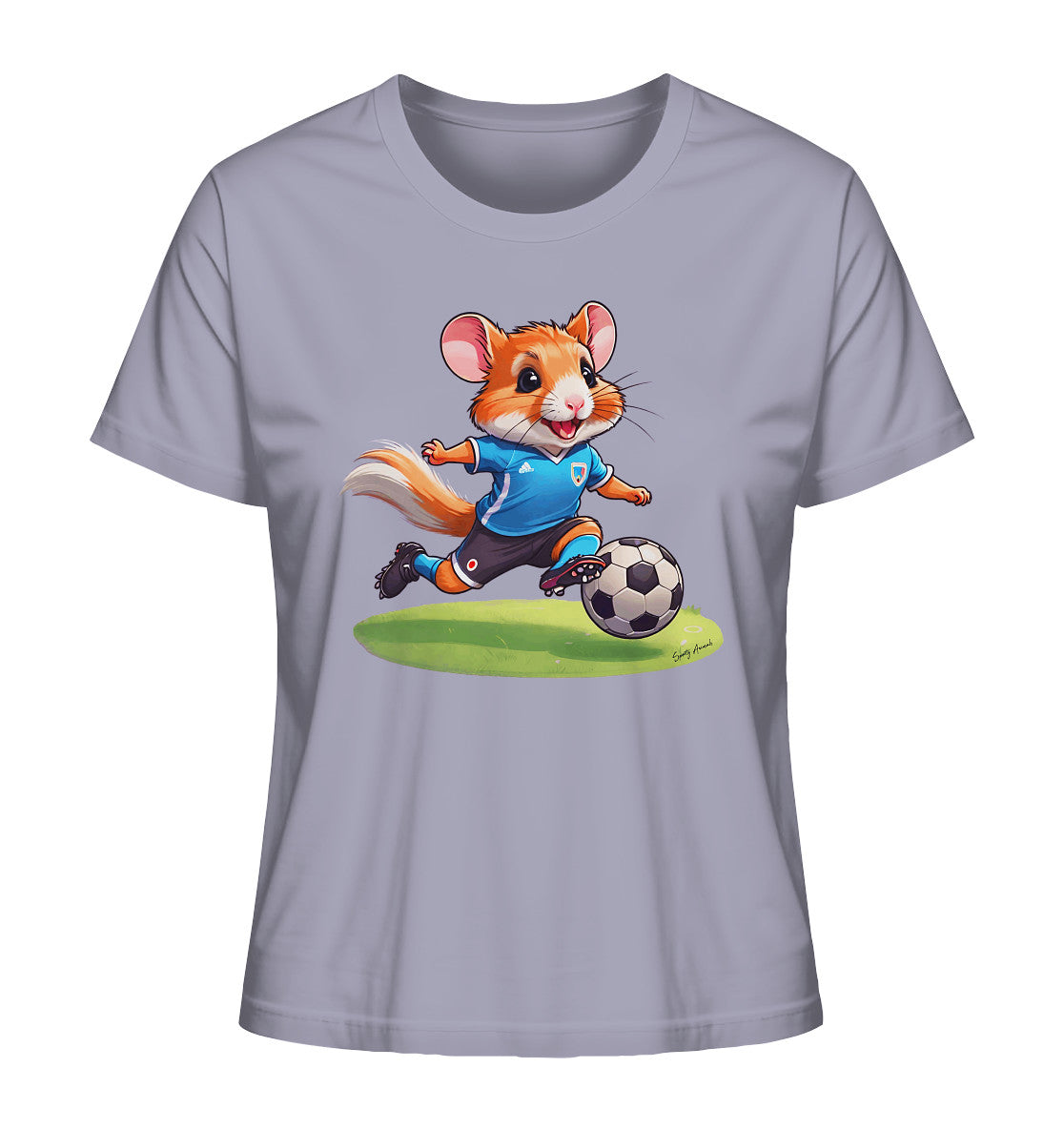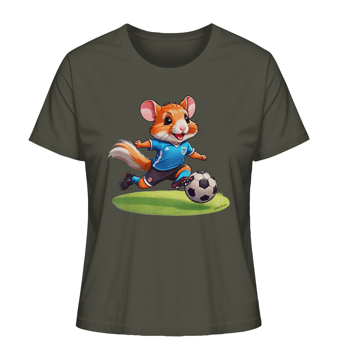 „Entdecke unser trendiges Damen-T-Shirt im Comic-Style! Ein absolutes Must-Have für alle Tier- und Fußballfans! Mit einem niedlichen Hamster, der den Ball geknallt jongliert. Dieses Shirt bringt nicht nur Farbe in deinen Kleiderschrank, sondern auch ein Lächeln auf dein Gesicht. Hol dir jetzt deinen sportlichen Begleiter mit einem Hauch von Humor!
