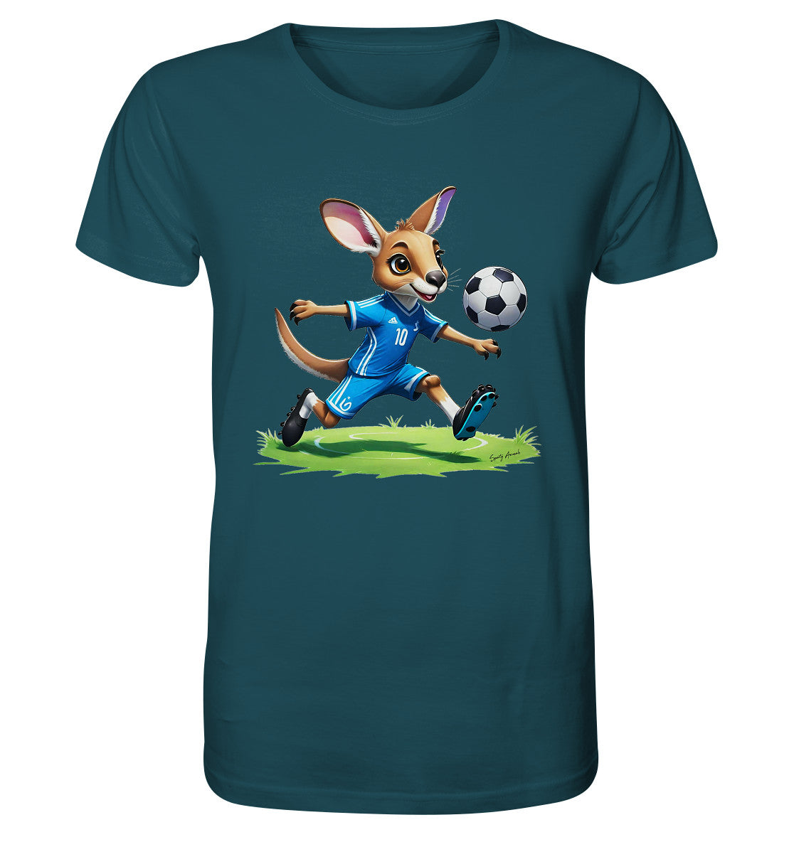 „Entdecke unser humorvolles T-Shirt für Damen und Herren mit einem lachenden Känguru, das Fußball spielt! Dieses Shirt kombiniert Style und Komfort für jeden Anlass. Mit einem Augenzwinkern und hochwertigem Material bist du bereit für Spaß und Action. Hol dir jetzt dein einzigartiges Outfit !"