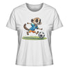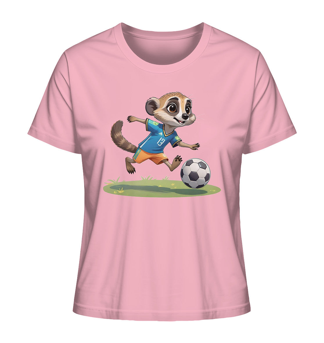 „Bringe Farbe und Spaß in deine Garderobe mit unserem Damen T-Shirt im Comic-Stil! Unser Shirt zeigt ein entzückendes Erdmännchen, das sich auf dem Fußballplatz austobt – perfekt für alle, die gerne lachen und Fußball lieben! Hergestellt aus weichem Material für höchsten Tragekomfort . Hol dir jetzt dieses einzigartige Shirt und zeige deine Liebe zum Spiel – mit einem tierischen Twist!“