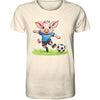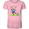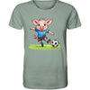„Entdecke unser ultimatives T-Shirt für Damen und Herren mit einem verspielten Schwein, das Fußball spielt! Dieses Shirt kombiniert erstklassigen Tragekomfort mit einem humorvollen Design, das garantiert für Lacher sorgt. Zeige deine Fußballbegeisterung und deinen Sinn für Spaß mit diesem einzigartigen Shirt!“