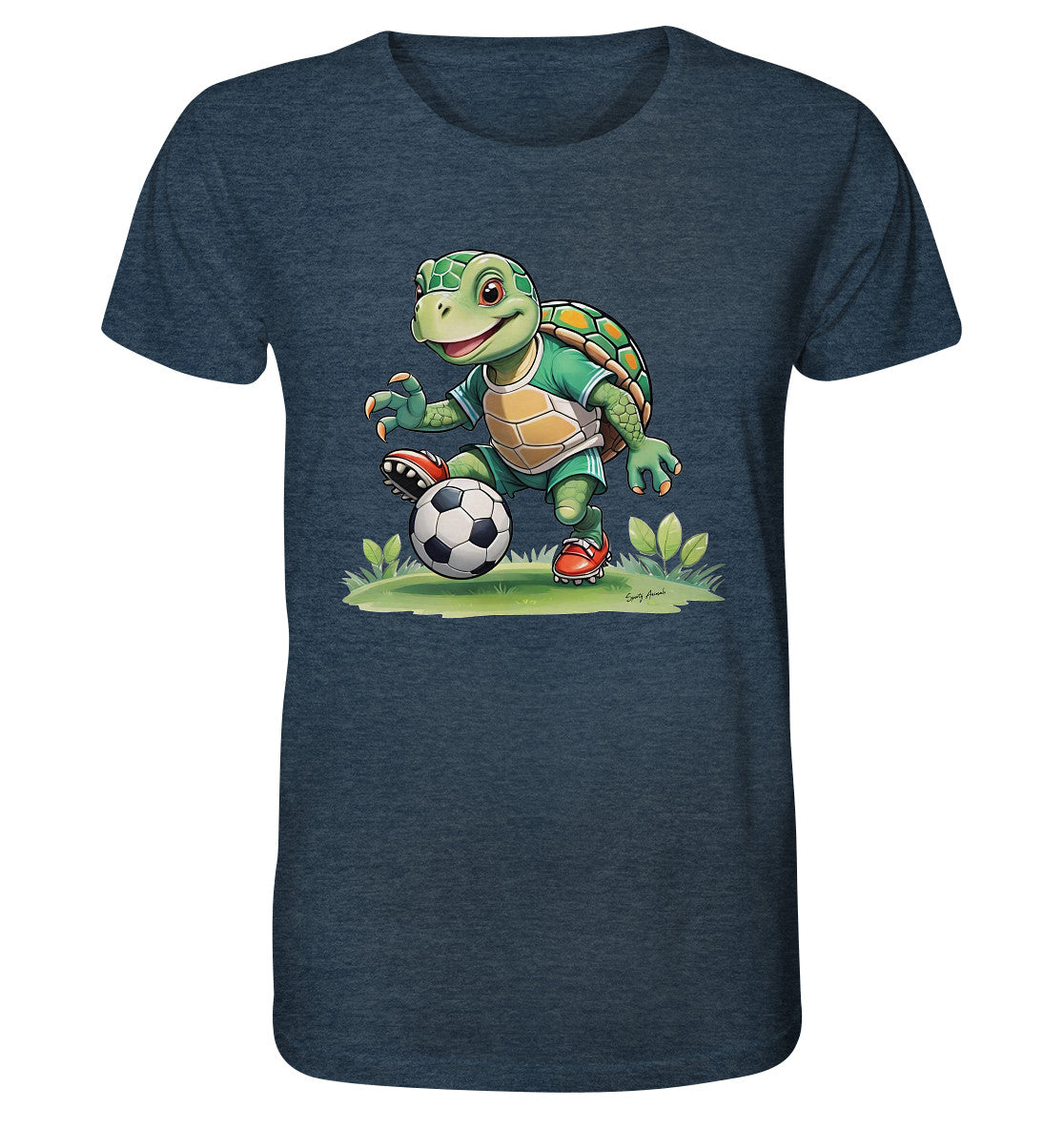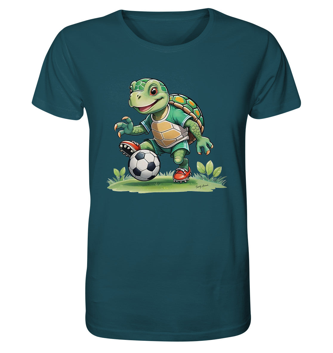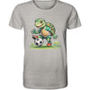 "Entdecke unser witziges T-Shirt für Damen und Herren mit einer frechen Schildkröte, die Fußball spielt! Dieses Shirt kombiniert hochwertige Qualität mit einem einzigartigen Design, das garantiert für Lacher sorgt. Zeige deinen Sinn für Humor und Stil - hol dir jetzt dein cooles Schildkröten -Fußball-Shirt!"