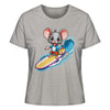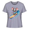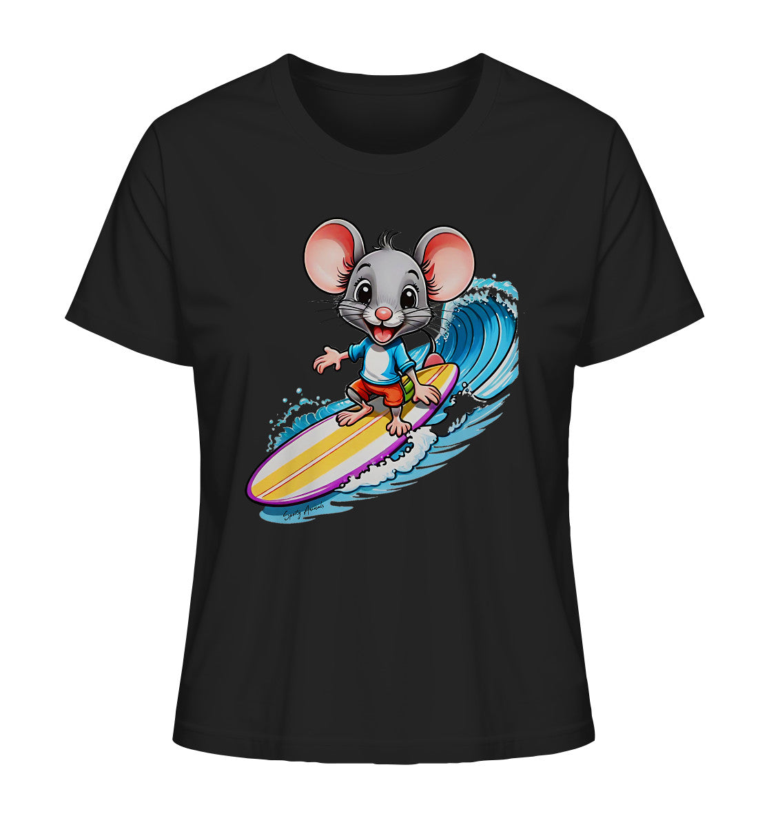 "Mit unserem Damen T-Shirt im Comic-Style wird jede Surfsession zum tierischen Spaß! Eine witzige Maus auf ihrem Surfbrett sorgt für Lacher und gute Laune. Das Shirt ist nicht nur ein Hingucker, sondern auch super bequem – perfekt für einen Tag am Strand oder in der Stadt. Hol dir jetzt deinen Surf-Buddy und bringe etwas Schwung in deinen Kleiderschrank!“