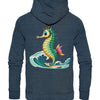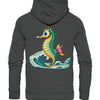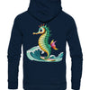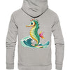 Entdecken Sie unseren einzigartigen Hoodie für Damen und Herren mit einem Seepferdchen, das surft! Das Seepferdchen, bekannt für seine anmutige Gestalt und seine Fähigkeiten, durch das Wasser zu gleiten, bringt spielerische Leichtigkeit in Ihr Outfit. Der Hoodie ist nicht nur stylisch, sondern auch bequem und perfekt für entspannte Tage am Strand oder in der Stadt. Holen Sie sich jetzt Ihren Hoodie und bringen Sie Ihre Liebe zum Surfen und zur Natur zum Ausdruck!