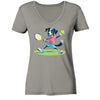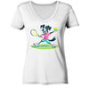 Hol dir das Damen T-Shirt mit V-Ausschnitt und einem witzigen Hund, der Tennis spielt! Dieser sportliche Vierbeiner serviert nicht nur Bälle, sondern auch Lacher. Perfekt für alle Hundeliebhaber und Tennisfans, die Mode mit Humor verbinden wollen. Dein Arsch im Style!