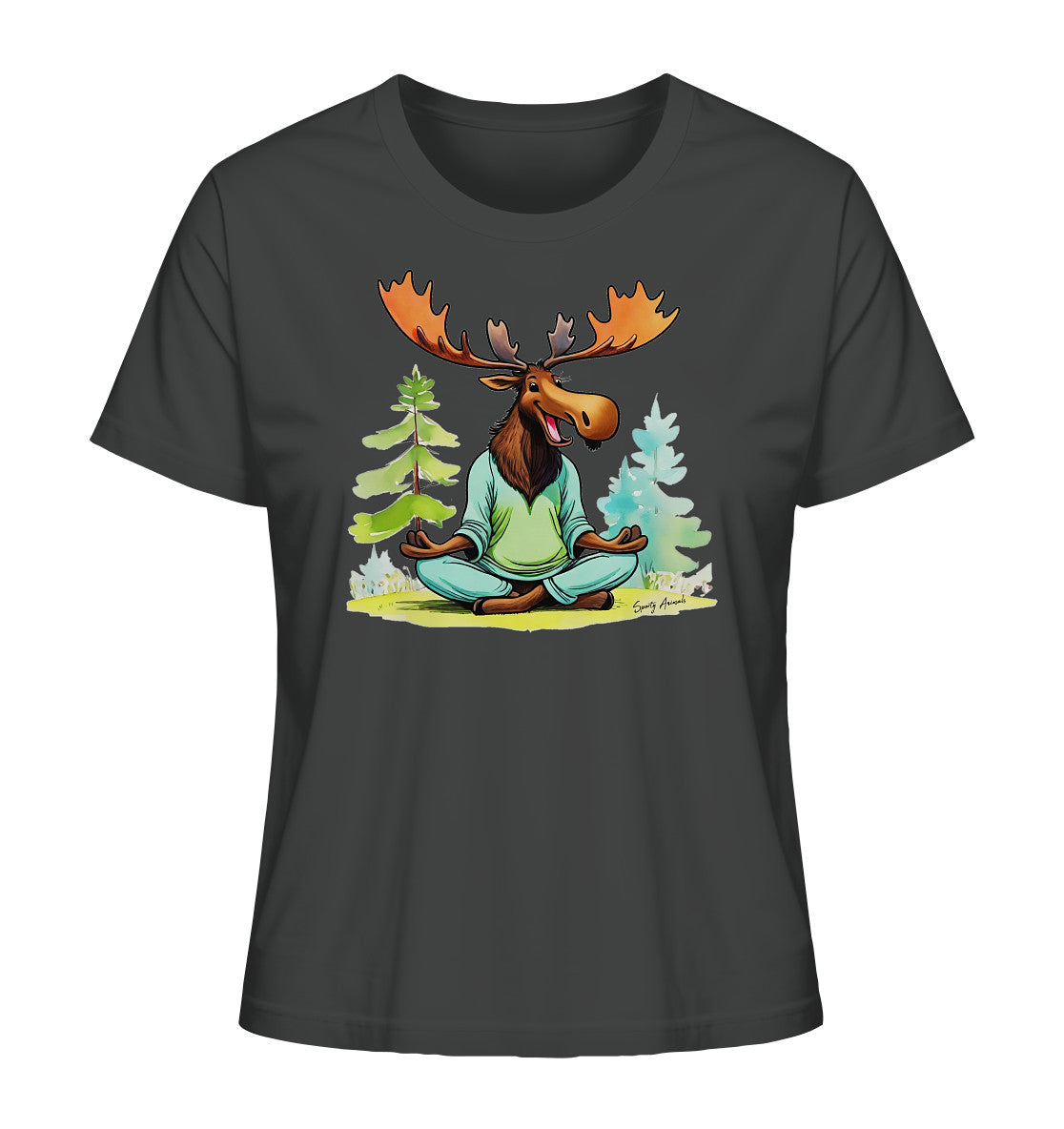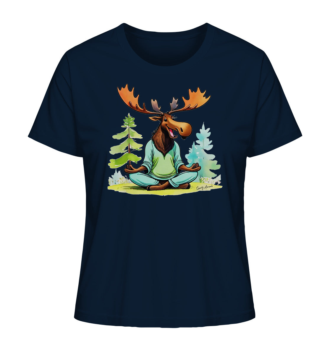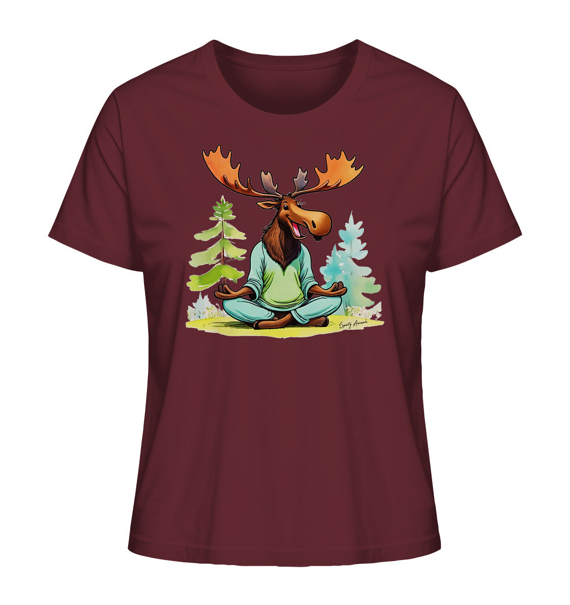 Unser Damen-T-Shirt zeigt einen lustigen Elch beim Yoga – ein Hingucker mit Humor! Hochwertige Qualität, bequemer Schnitt und ein Design, das zum Schmunzeln einlädt. Perfekt für Yoga-Liebhaberinnen mit einer Prise Humor. Entspannen Sie sich mit Stil und einem Lächeln!