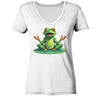 Entdecke das ultimative Yoga-Erlebnis mit unserem Damen-T-Shirt mit V-Ausschnitt! Ein lustiger Frosch, der Yoga macht, sorgt für Lacher und gute Laune bei deinen Übungen. Dieses T-Shirt bietet nicht nur einen bequemen Schnitt und hochwertiges Material, sondern auch eine Extraportion Spaß. Gönn dir diesen humorvollen Begleiter für deine Fitness-Routine!
