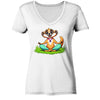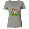 Unser Damen-T-Shirt mit V-Ausschnitt ist einzigartig und verspielt! Ein fröhliches Erdmännchen, das Yoga praktiziert, verleiht diesem Shirt einen charmanten Touch. Aus hochwertigem Material gefertigt, bietet es Tragekomfort und Stil. Perfekt für Damen, die ihren entspannten Look gerne mit einem humorvollen Element bereichern möchten!